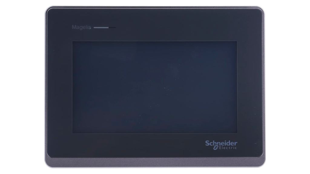 Display HMI touch screen, 7", serie ST6 Harmony Schneider Electric, risoluzione 800 x 480 pixel WVGA, display LCD TFT, processore ARM Cortex, memoria onboard 128 MB, retroilluminato, 6 porte Ethernet, grado di protezione IP20 e IP65, tensione di alimentazione 24 V c.c., dimensioni 153 x 208 x 45 mm, temperatura operativa da 0 a 50 gradi Celsius, certificazioni CSA, CE, NEMA 4, NEMA 13.