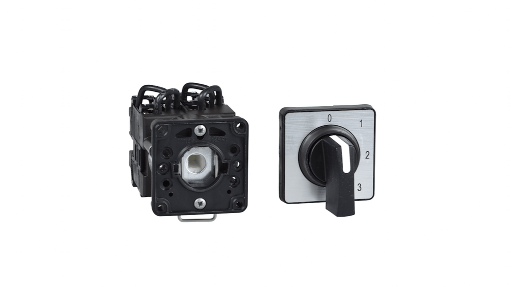 Interruttore passo-passo a camma 3 poli Schneider Electric, modello K1I023NCH, corrente massima 12 A, configurazione a 3 posizioni, angolo di 45 gradi, progettato per integrazione compatta. Tipo di interruttore a camma multipasso, serie K1.