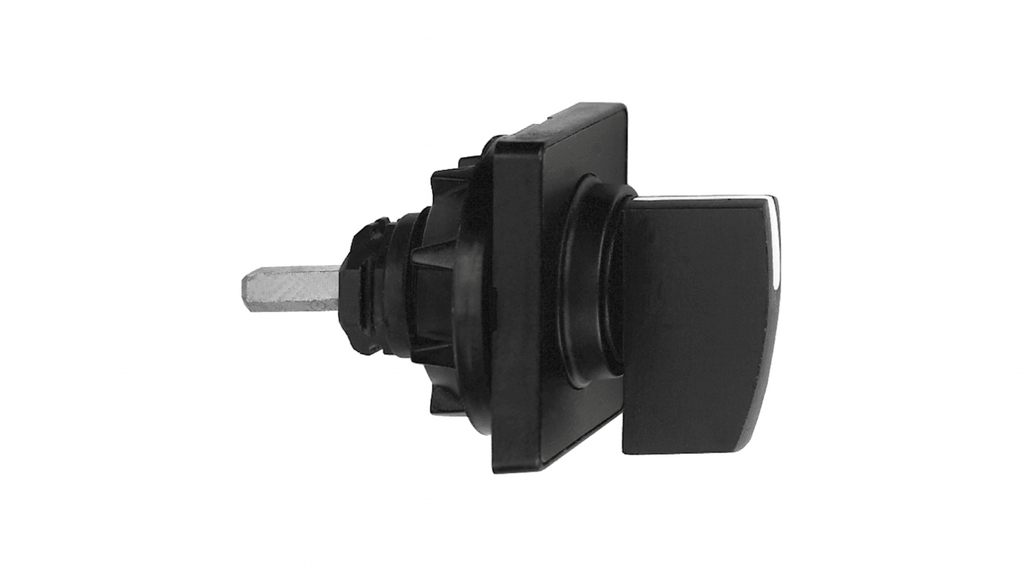 Manopola per interruttori a camme, progettata per uso con testa operativa. Colore nero, impugnatura nera, compatta e facile da integrare. Serie KAC.