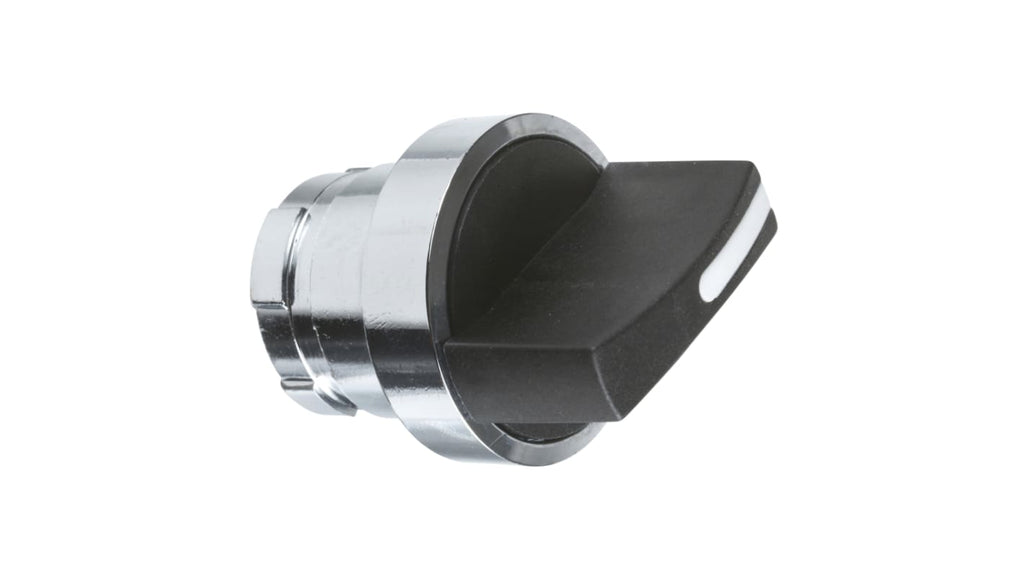 Testa di funzionamento per interruttori a camma, cornice di 28,5 mm, struttura in metallo, impugnatura standard nera, durata meccanica di 1000000 cicli, senza mercurio, conforme a RoHS, senza metalli pesanti tossici, prodotto verde Premium, grado di protezione IP65 conforme a IEC 529, diametro foro 22 mm, tipo di attuatore manico, serie Harmony XB5.