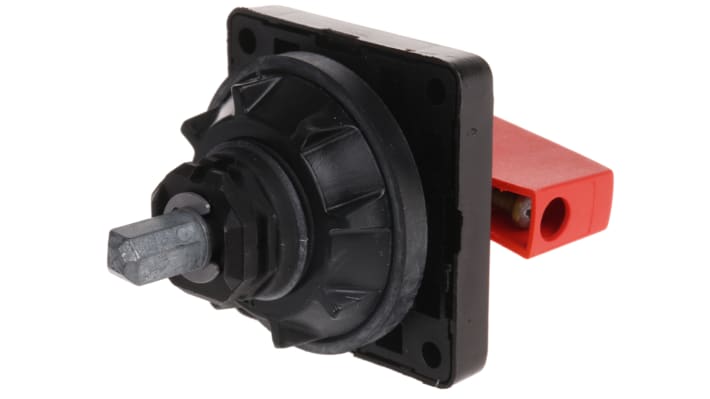 Manopola per interruttori a camme. Colore rosso, compatibile con la Serie Harmony K di Schneider Electric. Accessorio per sezionatori aperti e chiusi. Adatta per la gamma "Vario" di sezionatori. Codice costruttore KCC1LH.