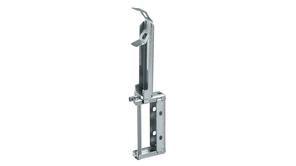 Staffa di fissaggio per sbarre Schneider Electric, dimensioni 272x33x61mm, compatibile con la serie Canalis KN. Prodotto Green Premium, privo di mercurio, sbraccio senza SVHC. Utilizzata per il fissaggio di parti a contenitori e per l'installazione. Accessorio versatile per adattare contenitori alle esigenze dell'utente. Codice costruttore KNB160ZFPU.