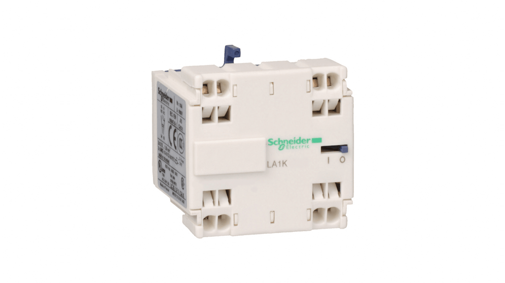 Blocco di contatti ausiliari Schneider Electric, 2 contatti, 2NC, montaggio frontale, corrente nominale 10A, accetta cavi fino a 2 x 2.5mm2, morsetti a molla, serie LA1, compatibile con TeSys.