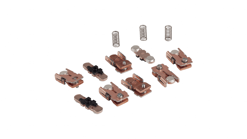 Set di contatti principali per contattori a 3 poli, compatibile con LC1D115, serie TeSys D. Ecocompatibile, privo di mercurio e metalli pesanti tossici. Peso 260 g, progettato per applicazioni industriali fino a 55 kW a 400 V. Componenti riciclabili, ottimizzati per la fine della vita utile. Tipo accessori: set pezzo di contatto principale.