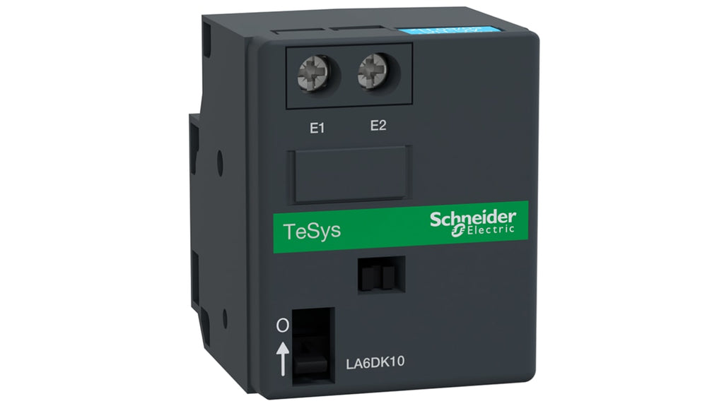 Blocco ad agganciamento meccanico per contattori. Attivazione del blocco meccanico con alimentazione della bobina, mantenimento del fissaggio chiuso. Bobina di sblocco disponibile a 240 V, rilascio a distanza o manuale. Impulso di sblocco minimo di 10 ms. Compatibile con serie LC e LP, accessori gamma d2. Codice costruttore LA6DK10U, marchio Schneider Electric.