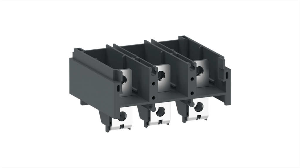Terminale per contattori, utilizzato per collegare cavi o barre di distribuzione al contattore. Consente una rapida reinstallazione dopo la manutenzione. Grado di protezione IP20, fornito in un set di 2. Compatibile con 3 Pole Giga Contactor LC1G265-500, tipo accessori, condensatore per motoriduttori AC, parte della gamma TeSys.
