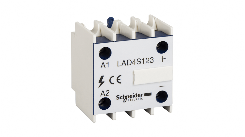 Contattore di commutazione Schneider Electric, serie LAD4, 1 NA + 1 NC, configurazione stato normale, compatibile con la gamma TeSys D, conforme alla normativa RoHS, progettato per applicazioni industriali. Codice costruttore LAD4S123.