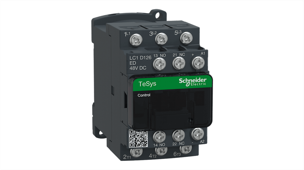Contattore di commutazione Schneider Electric, serie LC1D, 3 poli, 1 NA + 1 NC, corrente nominale 12 A, tensione bobina 48 V, velocità di funzionamento fino a 3600 cicli all'ora, temperatura ambiente fino a 60 gradi, montaggio su guida DIN o fissaggio a vite, bobina a basso consumo, resistenza al fuoco migliorata, dispositivi ausiliari antipolvere.