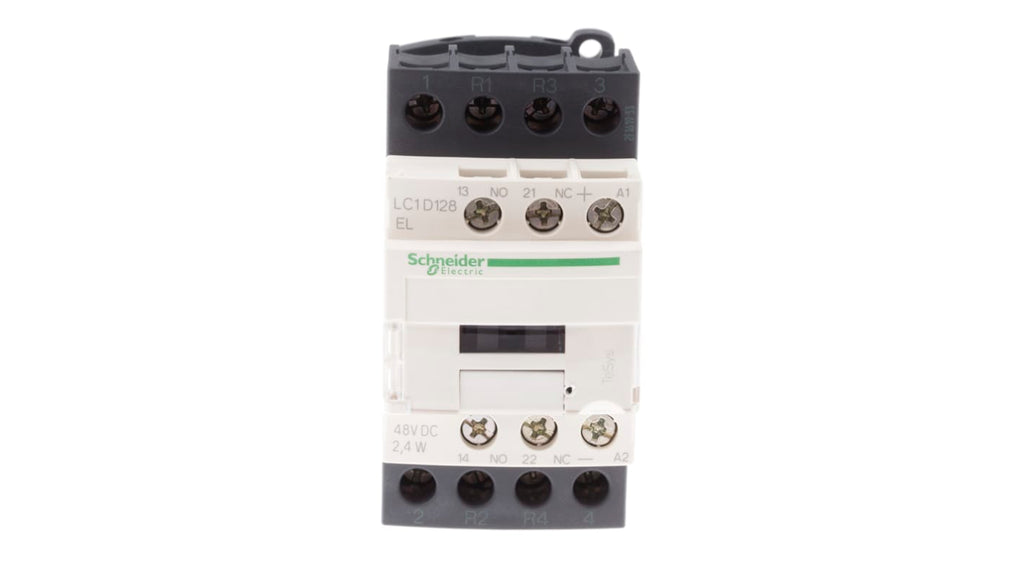 Contattore Schneider Electric, serie LC1D, 4 poli, 2 NO + 2 NC, 25 A, bobina 48 V c.c. Tensione nominale contatto 690 V c.a./c.c., terminali a vite, montaggio a pannello o su guida DIN, dimensioni 85 mm x 45 mm x 99 mm. Include soppressore a diodo per protezione bobina, accessori installabili, configurazione contatti ausiliari 1 NO + 1 NC. Categoria di utilizzo AC1 e AC3.