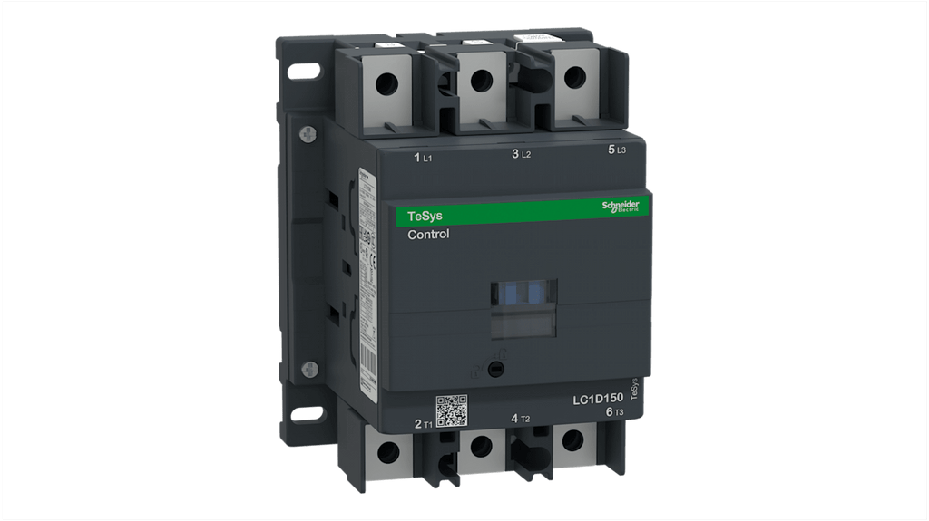Contattore Schneider Electric, serie LC1D, 3 poli, 3 NA, 150 A, bobina 48 V c.a. Tensione nominale contatto 1 kV c.a., 690 V c.c., corrente nominale contatto 150 A, configurazione contatti ausiliari 1NO + 1NC, numero di contatti ausiliari 2, tipo terminale terminazione ad anello ad aletta, dimensioni 120 mm x 158 mm x 136 mm, montaggio a pannello o su guida DIN, grado di protezione IP20.