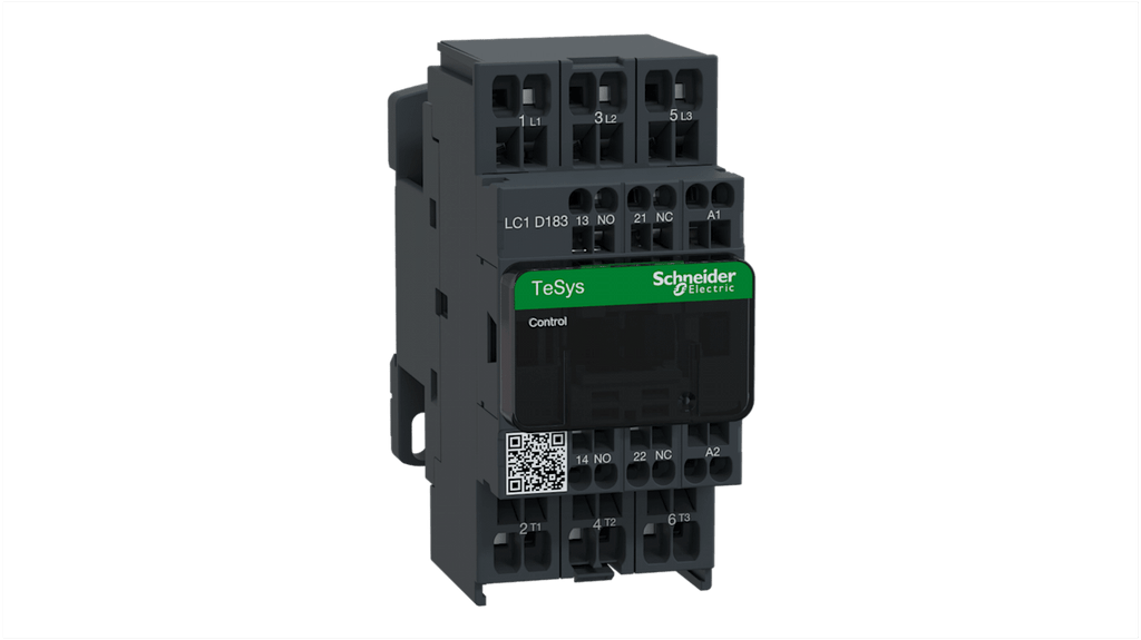Contattore reversibile Schneider Electric, 3 poli, 1 N/C + 1 N/A, 18 A, 10 kW, bobina 24 V c.a., serie TeSys D, modulo senza tecnologia coil soppressore, collegamento tramite terminal a molla, grado di protezione IP20 conforme a IEC 60529, temperatura ambiente d'esercizio -40 a 60 °C.