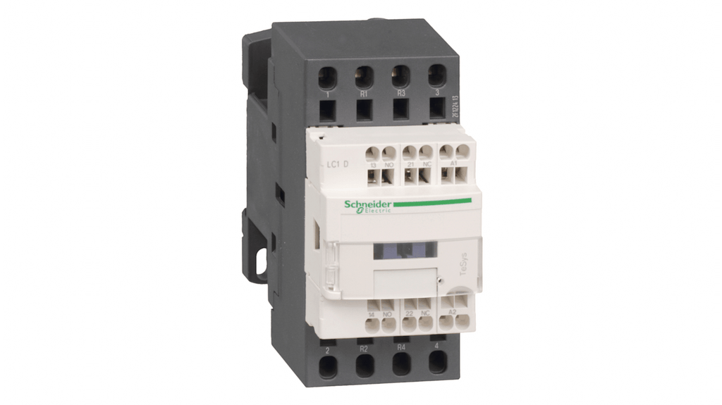 Contattore di commutazione per applicazioni di controllo del motore, 2 poli, 1 NA + 1 NC, corrente nominale 25 A, tensione bobina 22 V, velocità di funzionamento fino a 3600 cicli all'ora, temperatura ambiente fino a 60 gradi, montaggio su guida DIN o fissaggio a vite, bobina a basso consumo, resistenza al fuoco migliorata, dispositivi ausiliari antipolvere.