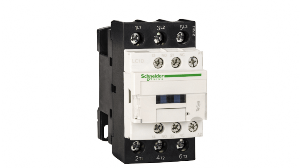 Contattore Schneider Electric per controllo motori, 3 poli, 3 contatti normalmente aperti, corrente nominale 25 A, potenza nominale 5,5 kW, tensione bobina 42 V, frequenza 50/60 Hz, contatti ausiliari 1NO+1NC, collegamento a morsetti a vite, montaggio su guida DIN o fissaggio a vite, dimensioni 45 mm di larghezza, operatività fino a 3600 cicli/ora, temperatura ambiente fino a 60 gradi.