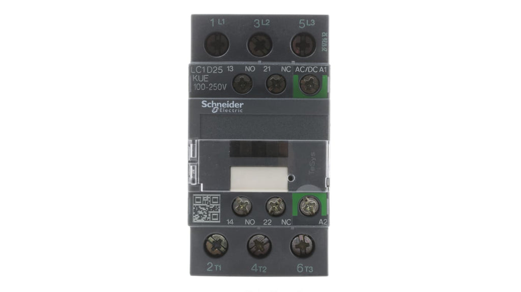 Contattore Schneider Electric, serie LC1D, 3 poli, 3 NO, 25 A, 11 kW, bobina 230 V ca. Tensione nominale contatto 690 V c.a., montaggio su guida DIN, terminali a vite, dimensioni 45 mm x 92 mm x 85 mm, temperatura operativa da -25°C a +60°C, 2 contatti ausiliari, grado di protezione IP20. Progettato per applicazioni di controllo motori e carichi resistivi.