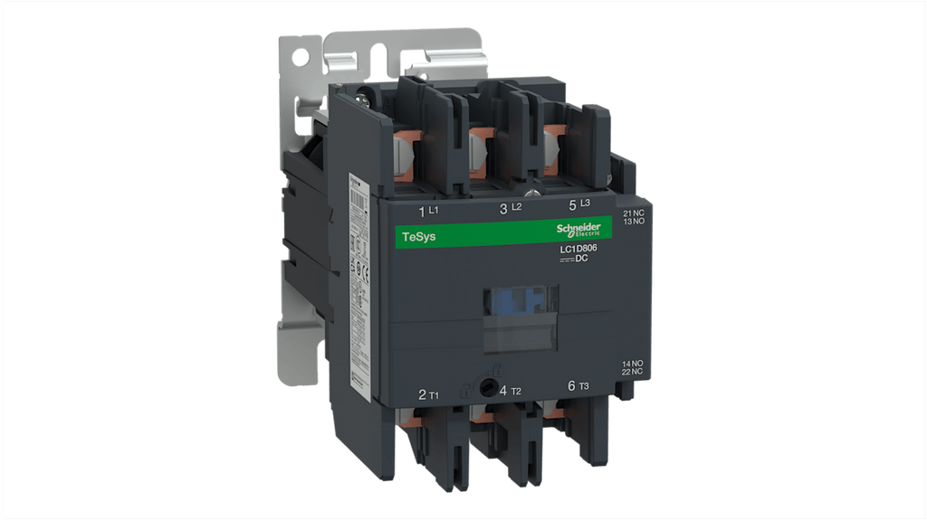 Contattore reversibile Schneider Electric, 3 poli, 1 N/C + 1 N/A, 80 A, 45 kW, bobina 24 V c.c., serie TeSys D, grado di protezione IP20, temperatura ambiente d'esercizio -40 a 60 gradi Celsius, collegamento circuito di controllo tramite terminal ad alette, conforme a IEC 60529.
