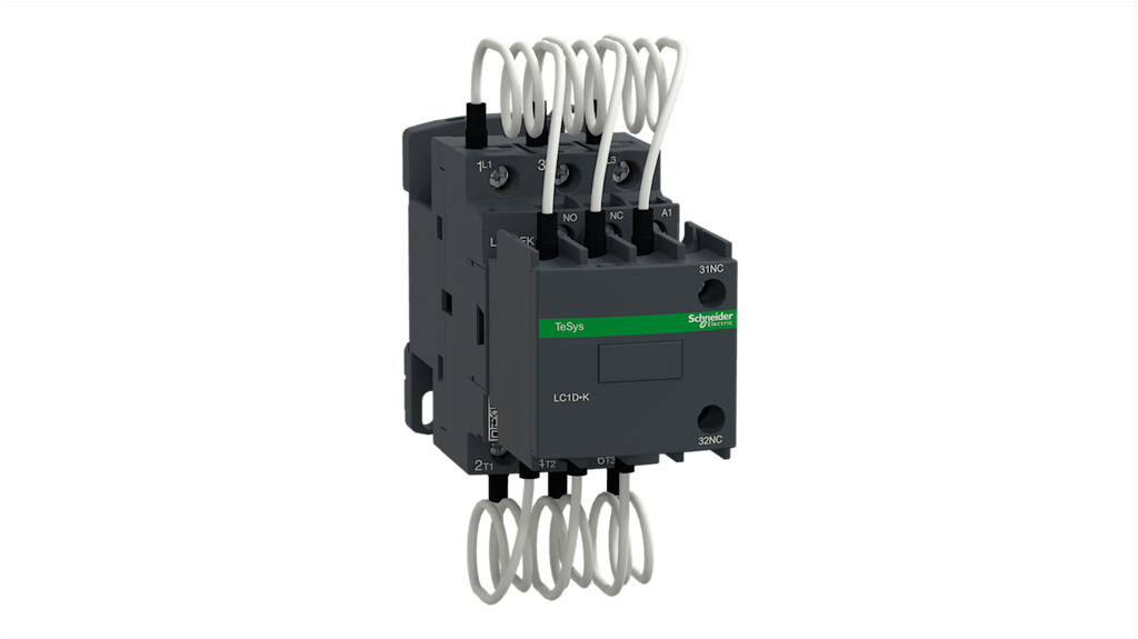 Contattore per commutazione condensatore, Schneider Electric, serie LC1D, 3 poli, 3 NO, corrente nominale 25 A, tensione bobina 230 V ca, tensione nominale contatto 690 V ca, montaggio a pannello con viti o su guida DIN, dimensioni 45 mm x 122 mm x 130 mm, temperatura operativa da -5°C a +60°C, accessori installabili, alta affidabilità e resistenza agli urti. Codice costruttore LC1DFKP7.