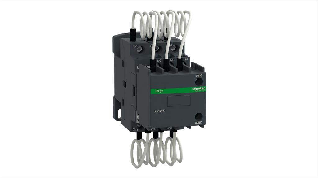 Contattore per commutazione condensatore, Schneider Electric, serie LC1D, 3 poli, 3 contatti normalmente aperti, corrente nominale 36 A, tensione bobina 110 V c.a., tensione nominale contatto 690 V c.a., montaggio a pannello con viti o su guida DIN, dimensioni 45 mm x 127 mm x 125 mm, temperatura operativa da -5°C a +60°C, accessori disponibili per configurazioni personalizzate.