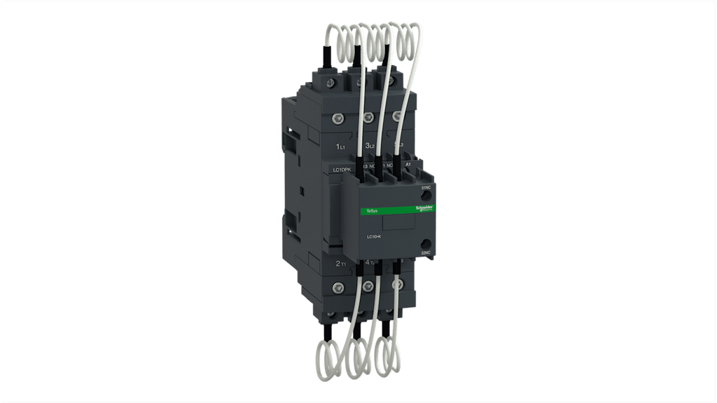 Contattore di commutazione Schneider Electric, serie LC1D, 3 poli, 1 NA + 1 NC, bobina a basso consumo, controllo elettronico, velocità di funzionamento fino a 3600 cicli all'ora, temperatura ambiente fino a 60 gradi, montaggio su guida DIN o fissaggio a vite, morsetti ad anello con viti multi-standard, resistenza al fuoco, ausiliari a prova di polvere. Codice costruttore LC1DPKF7.