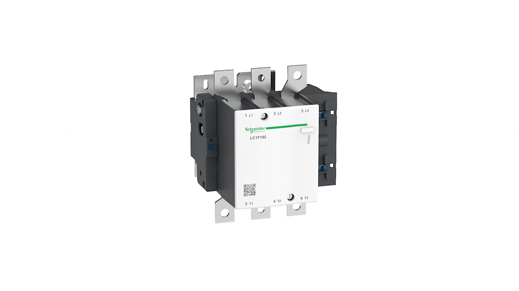Contattore a 3 poli per il controllo di motori e carichi resistivi, Schneider Electric LC1F185N7, corrente nominale 185 A, tensione bobina 415 V c.a., configurazione 3 NO, dimensioni 174 mm x 168.5 mm x 181 mm, temperatura operativa da -5°C a +55°C, serie TeSys F.