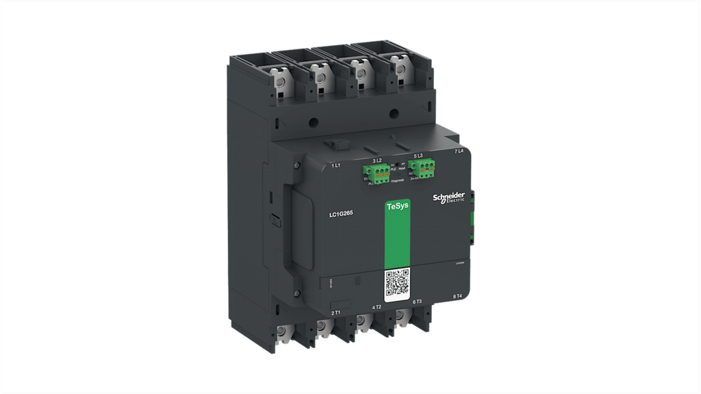 Contattore di commutazione Schneider Electric, serie LC1G, 4 poli, 1 NA + 1 NC, corrente nominale 700 A, tensione bobina 24-48 V c.a./c.c., progettato per applicazioni ad alta potenza, elevata affidabilità e durata meccanica, montaggio versatile, manutenzione semplificata, OLR montabile sotto il contattore, consumo energetico ridotto, ampia larghezza di banda di tensione.