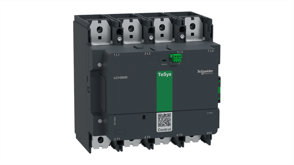 Contattore di commutazione Schneider Electric, serie LC1G, 4 poli, 1 NA + 1 NC, corrente nominale 1,05 kA, tensione bobina 100 a 250 V c.a./c.c., temperatura ambiente da 25 a 60 gradi, montaggio versatile, manutenzione facilitata senza rimozione cavi, compatto, progettato per applicazioni ad alta potenza con elevata affidabilità e durata meccanica. Codice costruttore LC1G8004KUEN.