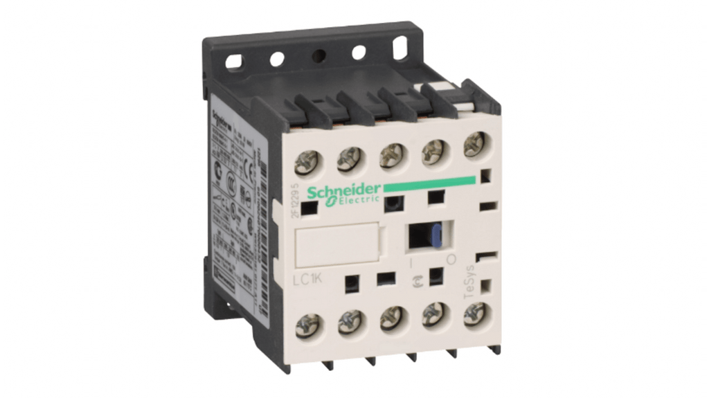 Contattore Schneider Electric TeSys K, 3 poli, 3 contatti normalmente aperti, corrente nominale 6 A, potenza nominale 1,5 kW, tensione bobina 230 V, frequenza 50/60 Hz, contatto ausiliario 1NC, collegamento a morsetti a vite, operatività fino a 600 cicli/ora, temperatura ambiente fino a 50 gradi Celsius, modulo soppressore di transienti integrato.