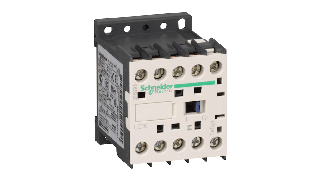Contattore di commutazione Schneider Electric, serie LC1K, 3 poli, 1 NA + 1 NC, corrente nominale 6 A, bobina a basso consumo, controllo elettronico, velocità di funzionamento fino a 600 cicli all'ora, temperatura ambiente fino a 60 gradi, montaggio su guida DIN o fissaggio a vite, dimensioni ottimizzate, ampia gamma di accessori disponibili.