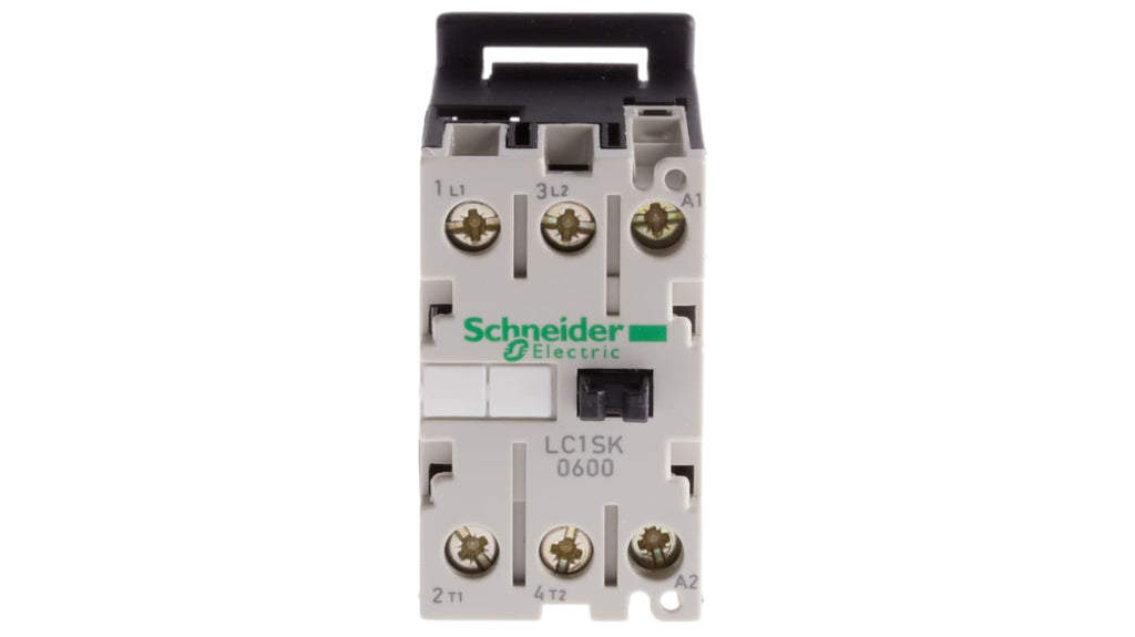 Contattore Schneider Electric, serie LC1S, 2 poli, 2 NA, 6 A, bobina 24 V c.a. Tensione nominale contatto 690 V c.a., corrente nominale contatto 6 A, configurazione contatti ausiliari 1 NA, tipo terminale vite, dimensioni 27 mm x 56 mm x 55.5 mm, montaggio a pannello o su guida DIN, grado di protezione IP20, conforme a UL, CSA, IEC947, VDE0110, NFC63-110.