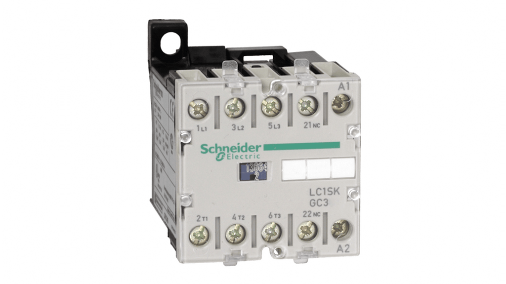 Contattore, serie LC1SKGC, 3 poli, 3NO, 9 A, bobina 230 V c.a. Tensione nominale contatto 690 V c.a., corrente termica convenzionale 20 A, progettato per applicazioni con carico resistivo. Certificato CB CE UKCA EAC e cULus. Configurazione stato normale 3NO. Marchio Schneider Electric, codice costruttore LC1SKGC310P7.