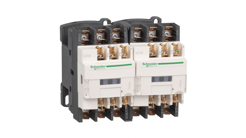 Teleinvertore Reversibile Schneider Electric, serie LC2D, 3 poli, 1 NA + 1 NC, 12 A. Progettato per applicazioni elettriche domestiche e HVAC, velocità di funzionamento fino a 3600 cicli all'ora, temperatura ambiente fino a 60 gradi Celsius, montaggio su guida DIN o fissaggio a vite, interblocco meccanico, compatto e affidabile.