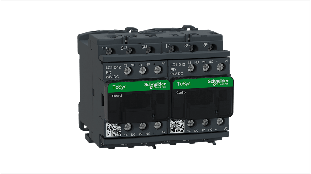 Teleinvertore Reversibile Schneider Electric, 3 poli, 1 NA + 1 NC, 12 A. Progettato per applicazioni elettriche domestiche e HVAC, velocità di funzionamento fino a 3600 cicli all'ora, temperatura ambiente fino a 60 gradi Celsius. Montaggio su guida DIN o fissaggio a vite, interblocco meccanico, compatto. Serie LC2D, range TeSys D.