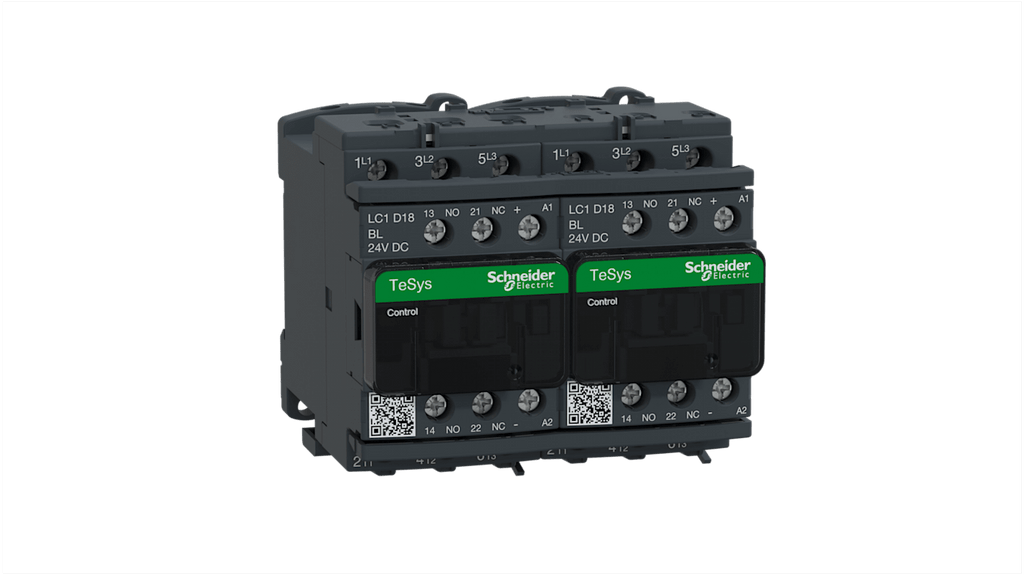 Contattore Schneider Electric, 3 poli, 3 NA, 18 A, 4 kW, bobina 24 V. Applicazioni di controllo motori fino a 18 A/690 V AC-3, potenza nominale 4 kW. Bobina a basso consumo energetico, contatti ausiliari 2NO+2NC, collegamento a morsetti a vite. Montaggio su guida DIN o fissaggio a vite, dimensioni compatte 90 mm, funzionamento fino a 3600 cicli/ora, temperatura ambiente fino a 60 gradi.