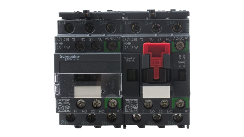 Contattore reversibile TeSys D Schneider Electric, serie LC2D, 3 poli, 3 contatti normalmente aperti, corrente nominale 18 A, potenza nominale 7,5 kW, tensione bobina 110 V c.a./c.c., montaggio su guida DIN, interblocco pre-installato, contatti ausiliari incorporati, terminali a vite, dimensioni 90 mm x 86 mm x 77 mm, temperatura operativa da -25°C a +60°C, conforme agli standard internazionali.
