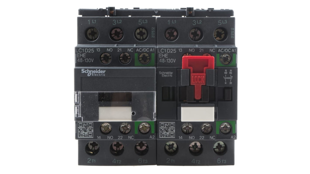 Contattore reversibile TeSys LC2D Schneider Electric, 3 poli, 3 contatti normalmente aperti, corrente nominale 25 A, potenza nominale 11 kW, tensione bobina 110 V c.a./c.c., montaggio su guida DIN, interblocco pre-installato, contatti ausiliari incorporati, terminali a vite, dimensioni 90 mm x 92 mm x 85 mm, temperatura operativa da -25°C a +60°C, conforme agli standard internazionali.