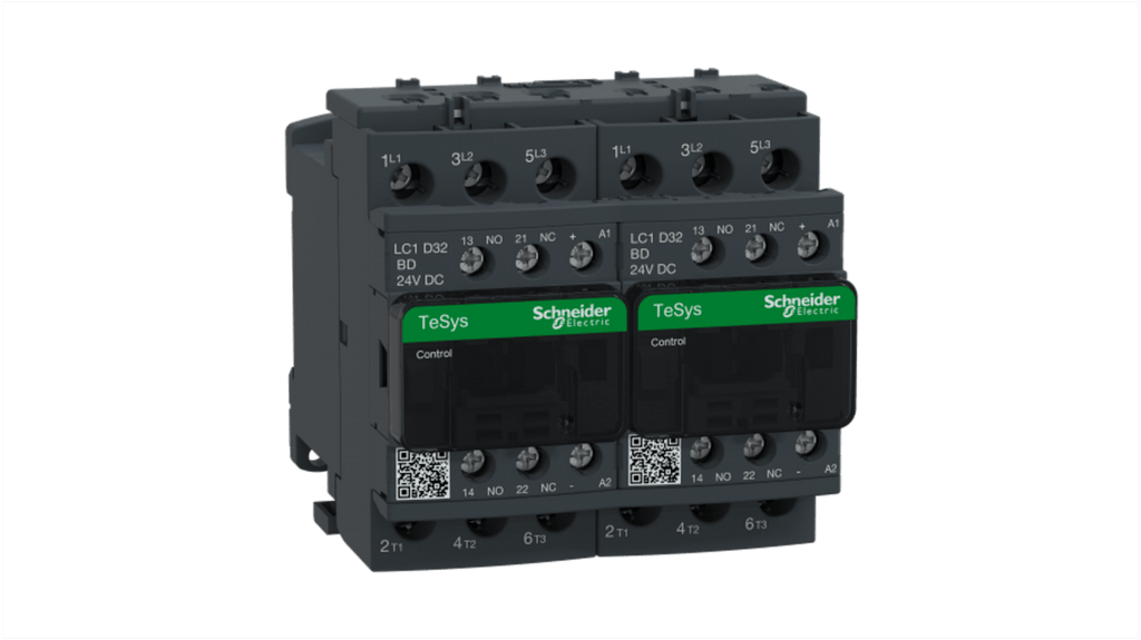 Teleinvertore Reversibile Schneider Electric, serie LC2D, 3 poli, 1 NA + 1 NC, 32 A, bobina 24 V. Progettato per applicazioni elettriche domestiche e HVAC, velocità di funzionamento fino a 3600 cicli all'ora, temperatura ambiente fino a 60 gradi, montaggio su guida DIN o fissaggio a vite, interblocco meccanico, compatto e affidabile.