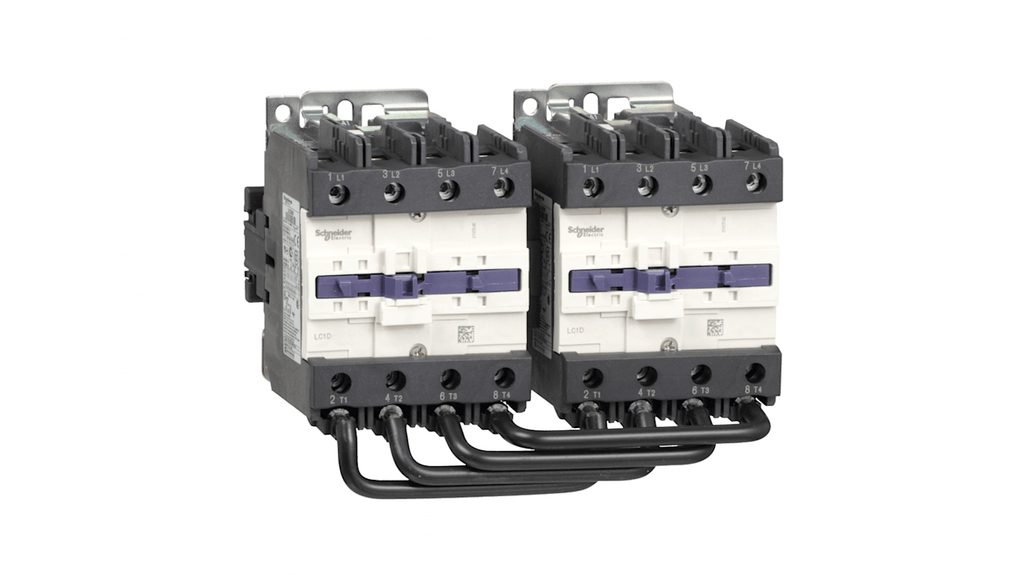 Teleinvertore Reversibile Schneider Electric, 4 poli, 1 NA + 1 NC, corrente nominale 25 A, progettato per applicazioni elettriche domestiche e HVAC, velocità di funzionamento fino a 3600 cicli all'ora, temperatura ambiente fino a 60 gradi Celsius, montaggio su guida DIN o fissaggio a vite, interblocco meccanico, compatto, serie LC2D, range TeSys D.