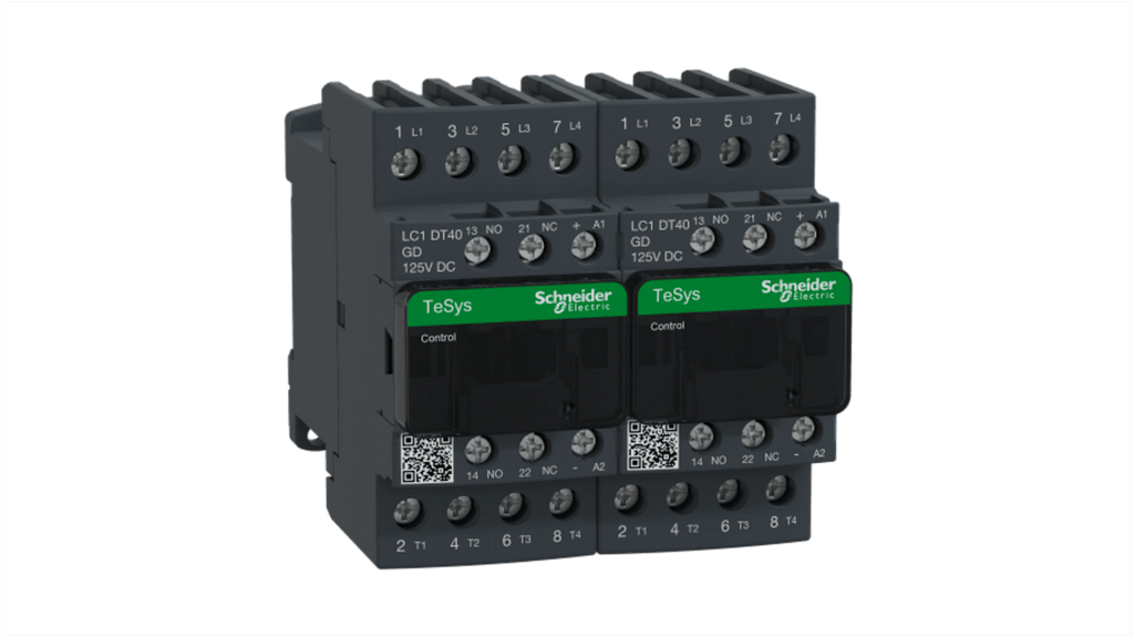 Teleinvertore Reversibile Schneider Electric, 4 poli, 1 NA + 1 NC, corrente nominale 40 A, serie LC2D, progettato per applicazioni elettriche domestiche e HVAC, velocità di funzionamento fino a 3600 cicli all'ora, operante in ambienti fino a 60 gradi Celsius, montaggio su guida DIN o fissaggio a vite, interblocco meccanico, facilità di installazione con viti multi-standard.