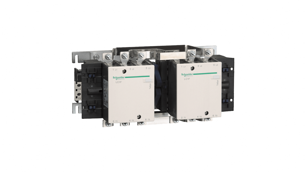 Contattore reversibile per il controllo di motori, Schneider Electric, serie LC2F, 3 poli, corrente nominale 200 A, potenza nominale 80 kW, tensione bobina 230 V c.a., tensione nominale contatto 1 kV c.a. e 460 V c.c., dimensioni 162 mm x 345 mm x 171 mm, temperatura operativa da -5°C a +55°C.