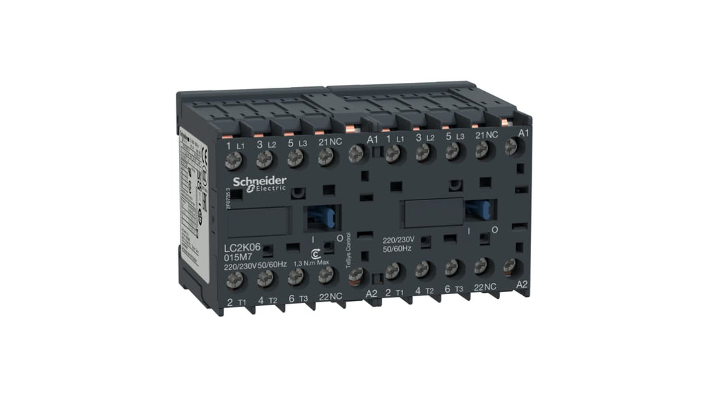 Teleinvertore reversibile Schneider Electric, serie LC2K, 3 poli, corrente nominale 20 A, potenza 4 kW, tensione bobina 48 V c.a., tensione nominale contatto 690 V c.a., configurazione contatti ausiliari 1NC, tipo terminale a vite, dimensioni 58 mm x 90 mm x 57 mm, temperatura operativa da -25°C a +50°C, montaggio su guida DIN, conforme a IEC 60947.