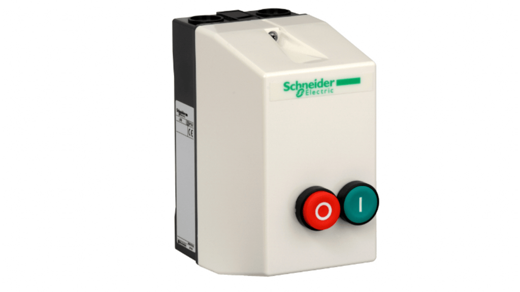 Starter DOL manuale per motori, potenza nominale 5,5 kW, tensione 240 V c.a., 3 fasi, corrente nominale 9 A, grado di protezione IP65, contenitore in policarbonato, contattore LC1D, circuito di controllo 230V 50/60Hz, montaggio superficiale con fissaggio a vite, conforme a IEC 60947-4-1, conformità Green Premium. Codice costruttore LE1D09U7, marchio Schneider Electric.