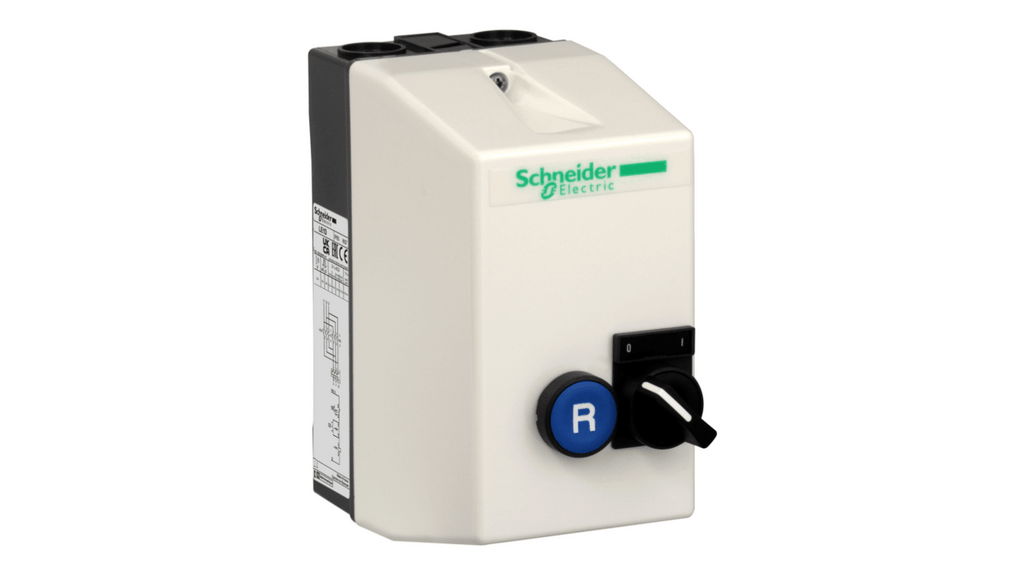 Starter DOL manuale per motori, potenza nominale 5.5 kW, tensione 400 V ac, 3 fasi, corrente nominale 9 A, grado di protezione IP65, conforme alla direttiva EU RoHS, serie TeSys di Schneider Electric.
