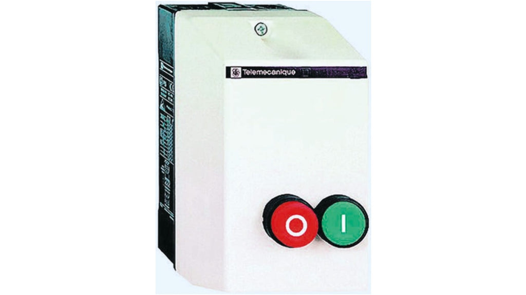 Starter DOL automatico per motori, potenza nominale 10 kW, tensione 24 V c.a., grado di protezione IP65, non reversibile, serie LC1D, dimensioni 201 mm x 101 mm x 153.5 mm, contenitore incluso. Richiede montaggio di relè di sovraccarico. Marchio Schneider Electric, codice costruttore LE1D18B7.