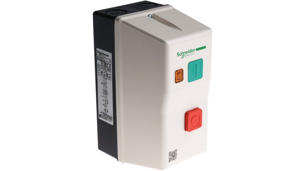 Starter per motore DOL automatico, 3 fasi, potenza 2,2 kW, tensione 415 V c.a., grado di protezione IP65, conforme alle norme IEC 60947-4-1. Dimensioni: lunghezza 160 mm, larghezza 78 mm, profondità 108 mm. Contenitore in policarbonato, montaggio su guida DIN, circuito precablato, funzionamento da -5 a +40 gradi Celsius. Modello LE1M35N712, marca Schneider Electric.