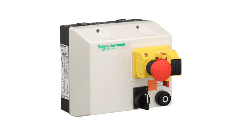 Avviatore reversibile DOL chiuso per applicazioni di sicurezza, potenza nominale 0,37 kW, tensione 230 V, corrente nominale 2,5 A, protezione termica con regolazione 1,6-2,5 A, grado di protezione IP55, struttura in policarbonato, conforme a CE e UKCA, privo di mercurio, conforme RoHS, prodotto sostenibile Green Premium.