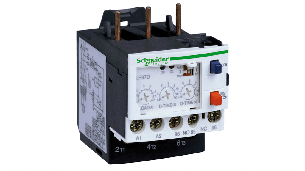 Relè di sovraccarico elettronico, 1 NO + 1 NC, carico FLC 0,3 a 1,5 A, corrente nominale contatto 1,5 A, tensione nominale contatto 690 V c.a., tensione di alimentazione 24 V c.a. / c.c., potenza nominale 55 W, metodo di reset automatico e manuale, dimensioni 64,5 mm x 45 mm x 67,5 mm, temperatura operativa da -25 a +60 gradi Celsius, montaggio su contattore diretto.