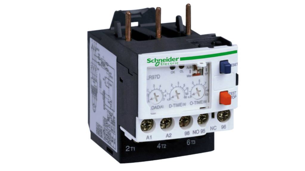 Relè di sovraccarico elettronico per motori, corrente nominale 5-25 A, tensione di controllo 24 V c.c., potenza nominale 0,055 kW, range di sovracorrente 5-25 A, O-TIME 3-10 secondi, D-TIME 5-30 secondi, compatibile con TeSys. Codice costruttore LR97D25B, marchio Schneider Electric.