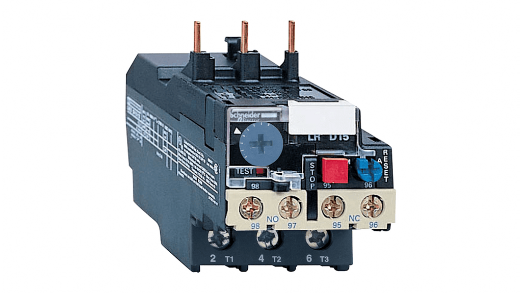 Relè di sovraccarico termico per motori c.a., carico FLC 25 a 32 A, corrente nominale contatto 5 A, configurazione 1 NA + 1 NC. Dotato di quadrante di regolazione termica, selettore di reset manuale-automatico, selettore di test e indicatore a bandiera. Progettato per applicazioni elettriche domestiche e HVAC, installazione semplificata con viti multi-standard. Marchio Schneider Electric, codice LRD1532.