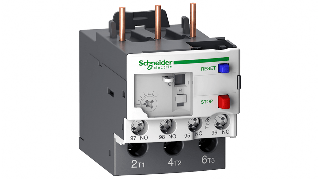 Relè di sovraccarico termico Schneider Electric, 1 NA + 1 NC, carico FLC 12 a 18 A, corrente nominale contatto 5 A, progettato per contattori TeSys D. Include pulsanti di test e reset manuali, reset automatico, contatto ausiliario di attivazione, indicatore di flag. Temperatura compensata per precisione nella protezione. Compatto e leggero.