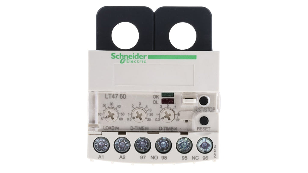 Relè di sovraccarico Schneider Electric, 1 NO + 1 NC, carico FLC 5 a 60 A, tensione di alimentazione 200 a 240 V c.a., corrente nominale contatto 60 A, potenza nominale 55 W, grado di protezione IP20, temperatura operativa da -25 a +60 gradi Celsius, dimensioni 70.3 mm x 71 mm x 77.2 mm, 2 contatti ausiliari, metodo di reset manuale, montaggio a vite.