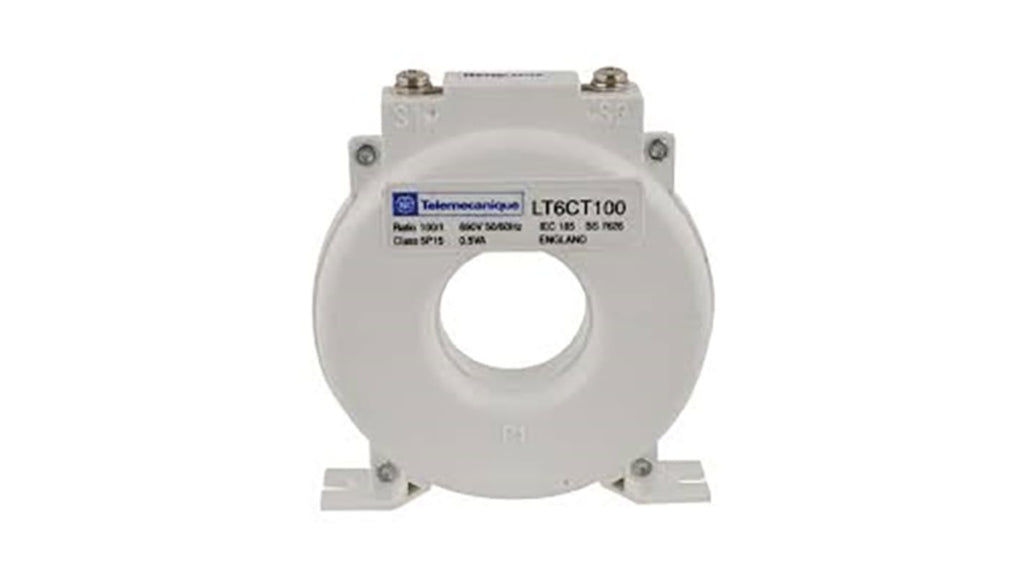 Trasformatore di corrente Schneider Electric, serie TeSys T, modello LT6CT1001. Gamma professionale di trasformatori di corrente esterni per azionamenti motori. Disponibile in diverse correnti nominali. Specifiche tecniche: serie, modello.